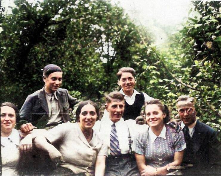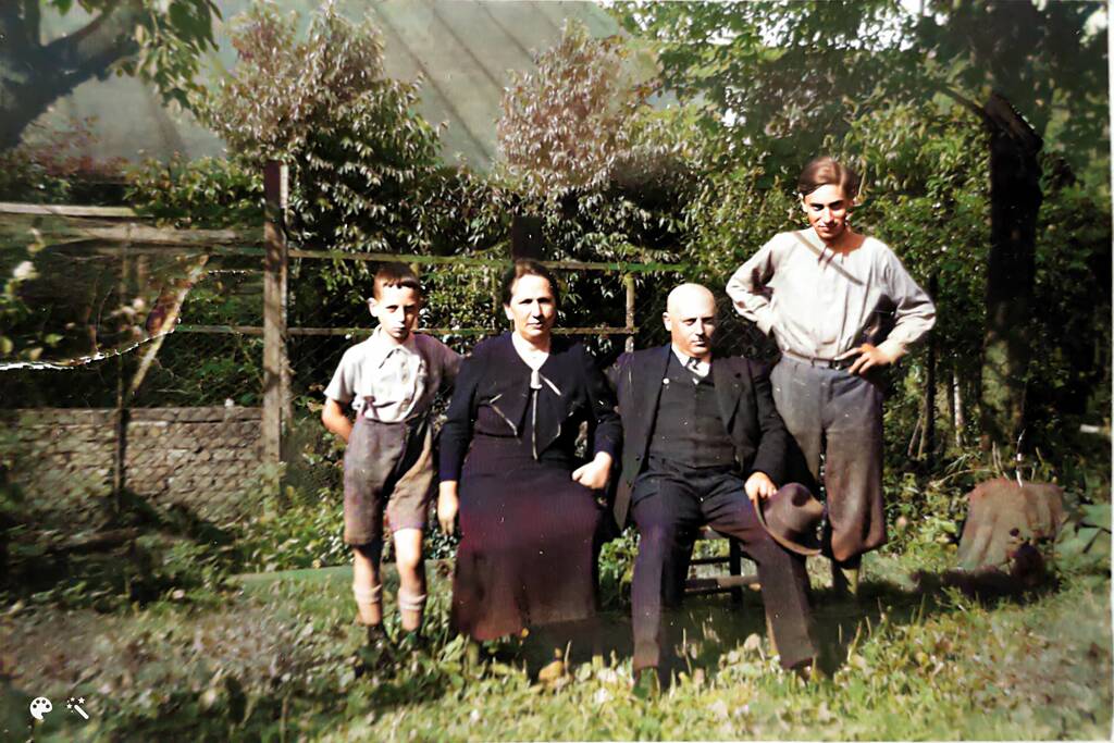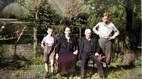 v.l.n.r.: hintere Reihe Walter Theisebach, Sophie Aussen, Oma Jenny Winter, Marianne Winter; vordere Reihe: Alfred Theisebach, Jenny Sachs, Herta und Anni Aussen. Nicht auf em Foto sind die Enkel: Henny & Karl Aussen, Herta Winter und Helmut Sachs.
