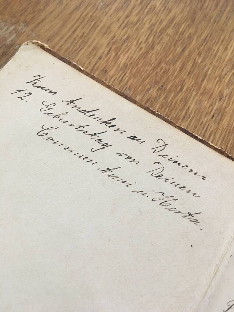 Anni war erst sechs, Herta vier Jahre alt, als sie das Poesiealbum verschenkten. Mutter Klara, die selbst 1908 ein Poesiealbum besaß, hatte wohl die Anregung gegeben, das Poesiealbum besorgt und den Eintrag namens ihrer beiden Töchter verfasst.